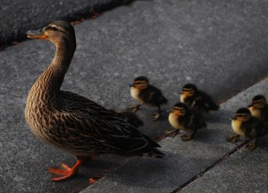 Here’s my suggestion for today, Work Out Wednesday. Go find some wild life. It’s out there. Dogs don’t count but cats do as they roam free (for the most part). Take a walk, run or a ride, go some place where you might find some critters. All you have to do is find a park. A dog park will do but while you’re there look for some pretty birds or bugs, even gophers count. There are lots of ladybugs and bees flying around these days. They all count. Just pay attention for a change and enjoy what you see. Take a second to stop and watch. This might sound silly but trust me you’ll return home feeling better than you did when you left. And, you may see something really amazing! Like my duckies!
